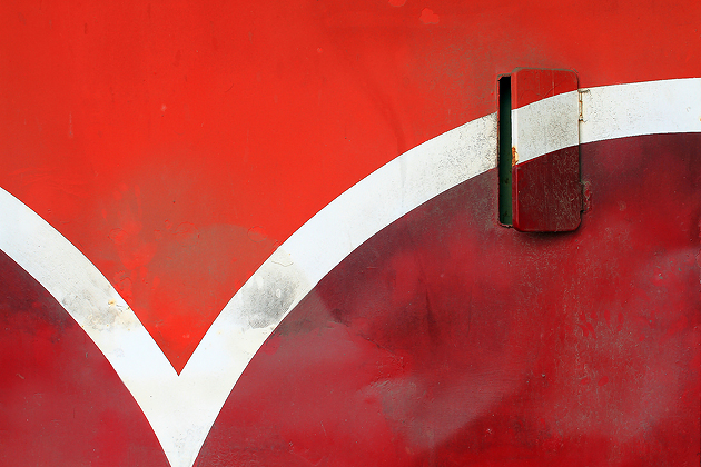 關於這張相片我必須說,能拍出這樣的畫面,就已經不是初學者,因為這是抽象化的拍法,不僅觀察力要更細微,構圖功力也必須有一定火侯。這張相片同時具備幾何與色彩,幾何方面點線面三者同時具備,第一視覺引導點位於右上方的蓋子,這是一個強大的點,第二視覺點位於左下方的曲線交集處,人眼容易對銳角產生關注,色彩方面是紅與橘鄰近色的搭配,這張相片不管怎麼看都是上乘佳作! (耀仁作品)