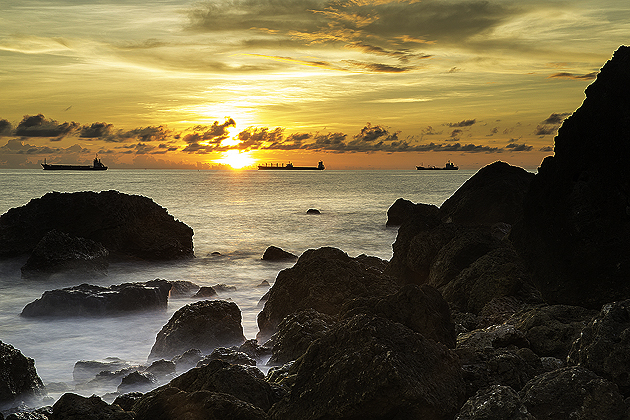 使用慢速快門補抓如夢似幻的浪花之外,前中後景具備,也掌握令人心曠神怡的黃昏色溫,遠方數艘輪船更是畫龍點睛增添人文元素,能拍出這張作相當不容易。(裕昇作品)