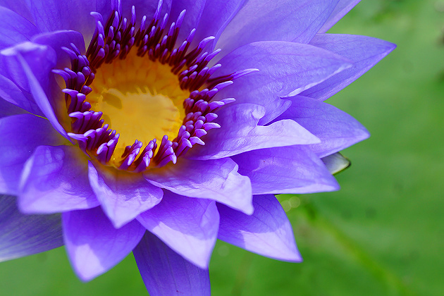 這張佳作非常令人驚豔!鮮黃花蕊安排在視覺重點區先以第一順序吸引你的目光後,繼而觀賞者的視線很自然地隨著花瓣線條逐步被引導向外拓展,直到綠色背景做個結束,花朵藏景以獲得更多的細節欣賞,整體用色為三色調,分別採用對比色與鄰近色,整張作品我認為構圖精妙、用色絕妙,非常完美,可以拍出這種水準代表已經不是初學者。(振家作品)
