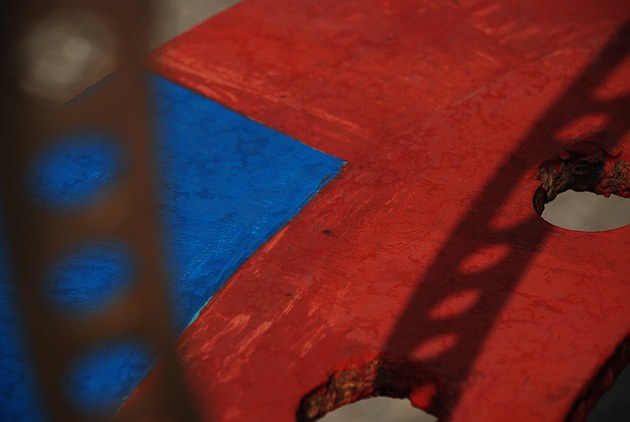 這張佳作的畫面元素中同時具備二種對比:紅與藍的顏色對比,以及光影的虛實對比。紅藍對比又以大面積的幾何形狀來表現,簡單俐落,並且紅色面積略多於藍色,主客分明,顏色之中帶著許多層次的質感,這是一張令人印象十分深刻的佳作! (淑靜作品)