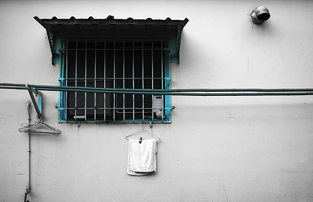 這張佳作有許多地方值得跟大家分享。首先是視覺引導上的順序處理的很好,第一眼容易讓注意力集中在左上方的窗戶,毛巾次之,右上方的排煙管又次之;第二是這張相片同時安排三種對比,其一是單衣架與多衣架,其二是右邊掛著毛巾與左邊無掛著毛巾,其三是左下方的水管與右上方的排煙管各為粗與細、長與短;第三是這張相片的顏色上以雙色調為主,然而牆面與毛巾並非白色,而是呈現許多的灰階與細節;第四是通常橫過畫面的線條容易產生切割畫面的影響,然而這張以曬衣桿橫過整個畫面卻沒有畫面分割或比例的感覺,非常難得! 第五,也是更難得可貴的一點,這是個存在於你我生活週遭再平凡不過的一景,要完成這張作品必須具備敏銳的攝影眼。(秀芝作品)