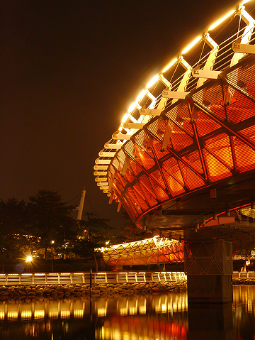 這張佳作採用直式構圖,直接呈現出緊湊感,不讓現場左邊過多的都市建築入鏡,且讓橋身大面積靠近鏡頭拍攝,取得相當大的面積及細節展現,主題相當鮮明,水平線放在黃金比例位置,緊湊感中亦能展現平穩及水面燈影,整體構圖安排地相當好! (俊彥作品)