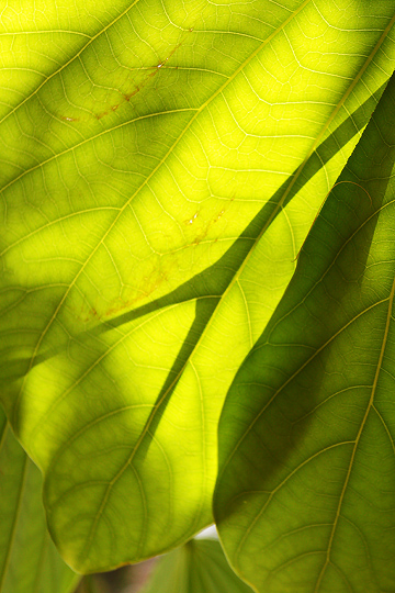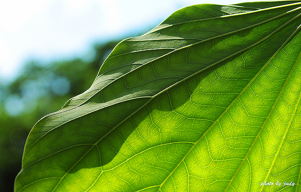 這張佳作吸引人的關鍵因素在於逆光的使用,以及明暗面積比例的控制,逆光下才能充分展現色彩的透光性以及葉面上的剪影,而右邊受光面較少故顏色較深,整體色彩雖同為單一綠色,卻因為光線而呈現非常豐富的綠色,最後是左邊亮綠色面積多於右邊暗綠色面積,顏色面積比例控制得宜。(宜淵作品)