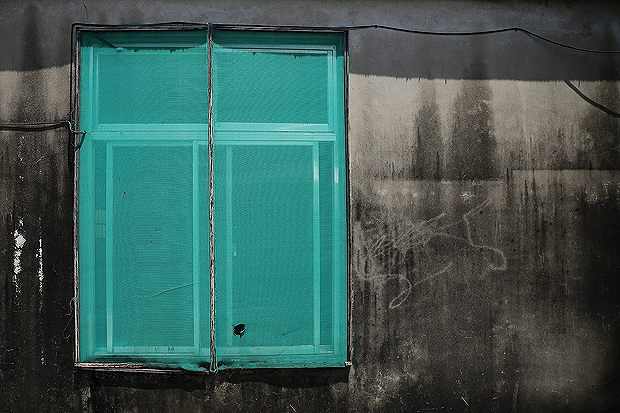 相當大氣且具有深度的一張好作,整體佈局以藍綠混色的窗戶為主體,仔細一看窗戶之中尚有不同排列的矩型窗格,灰階漸層豐富牆壁,形成一個絕佳背景,這張作品必須正面拍攝才能取得,若是稍微歪斜,形狀線條與整體調性便會迥然不同,這張作品具有相當好的成熟度。(政緯作品)