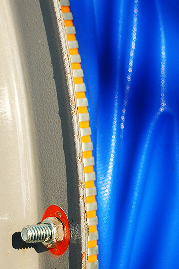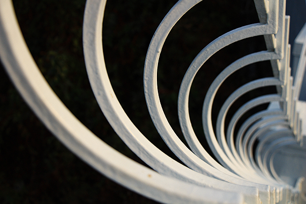 這張亦是使用線條為表現方式的作品,整張作品取救生圈的局部弧線來框取畫面右邊的線條,這些線條採用同中取異的方式構圖,成功地在為數眾多的線條數量中,將主角白色線條脫穎而出,成為最成功的視覺焦點,此時發現又與畫面左邊的白色面積在比例上呼應,是值得細細欣賞的線條表現佳作。(正鈞作品)