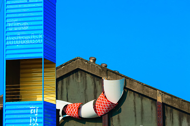 這張作品是相當優秀的三色調作品,拍到前要先能觀察到,我們的生活環境中到處都是顏色,只要具備顏色的觀察與安排能力,便能有效提昇作品的水準與內涵。紅黃藍在伊登十二色相環中為三原色,三原色搭配具備迅速而有力的傳達視覺效果,是一種設計界常見的色彩搭配,這張作品並進一步考慮到三色之間的面積比例安排,是三色調值得學習的傑作。(元中作品)
