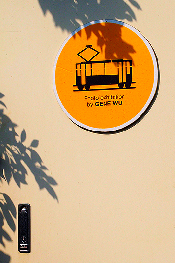 這張佳作經過二次構圖後,更貼切地展現幾何的圓與矩型,整張作品為黃色的單色調,主題圓招牌與背景的以單色深淺互搭,圓招牌裡面的圖案與文字,頗有引人好奇之意,樹蔭的光影,具有很好的點綴效果。(珮琪作品)