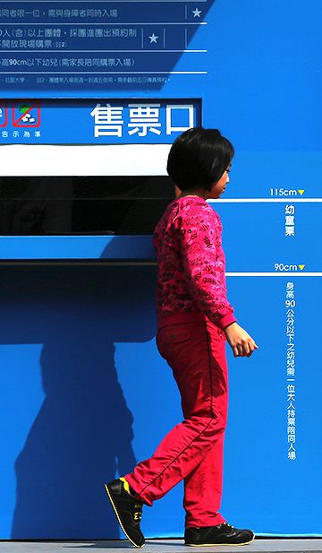 這張作品採用等待式攝影,在找到一處具有大面積色塊之背景處,耐心地等待適合搭配的人物入鏡,這個等待是值得的,小女孩的衣著顏色恰巧與背景形成雙色調作品,且呈現出冷暖色調對比,加上畫面上方一個倒梯形的幾何圖案安排,是相當優秀結合雙色調與幾何的作品。(虹秀作品)