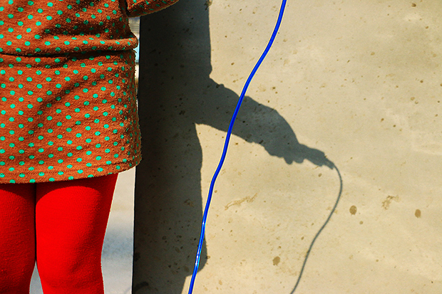 這張佳作實在太棒了! 令我印象非常深刻的好作。取一位小女孩在跳繩的過程,安排出紅藍色調的搭配,並且透過牆壁呈現出身形的光影,不僅在顏色上、實虛光影上安排傑出的對比,更難得的是人物取少見的身體局部入鏡,而非一般常見的上半身或七分身構圖,加上人物安排在黃金比例之中,安全討喜,一個簡單的跳繩動作,可安排出如此傑作,值得喝采與觀摩學習。(玟伶作品)