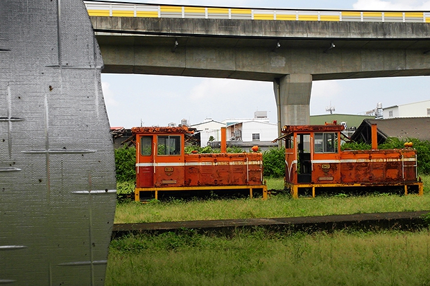 本張佳作採用框景式構圖,由於畫面左邊的殘破玻璃的歲月味道較強,故稍微刪減原作的部份窗框,如此可將主客二體區分清楚,並透過殘破玻璃呈現歲月的感受,與傳統舊式火車頭的味道呼應。(儀婷作品)