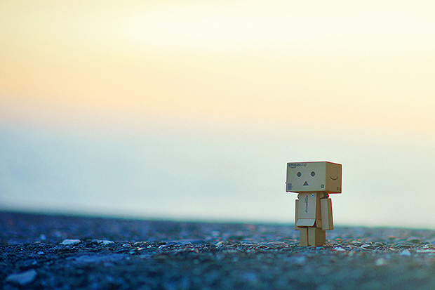 這是一張作者自行準備道具後所進行的創作,小紙人阿愣站在路上,似放空地遙看遠方,畫面左邊安排視線空間,有迎向未來、積極前進的感受,反之若視線空間安排在畫面右邊,則有回顧、回想、懷念的感受,視線方向不同,產生的視覺心理感受亦有差異。(宏陽作品)