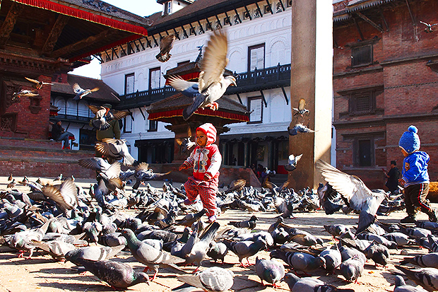 這是一張非常棒的人文作品,在陌生的國度裡,一個不知名的廣場上,二位身穿紅藍對比的兒童正在追逐著成群的鴿子,其中紅衣兒童頭頂上的二隻飛躍的鴿子,姿態上恰巧形成翅膀張翼鼓翅的二個動作,決定性瞬間的最佳寫照! (杏旋作品)