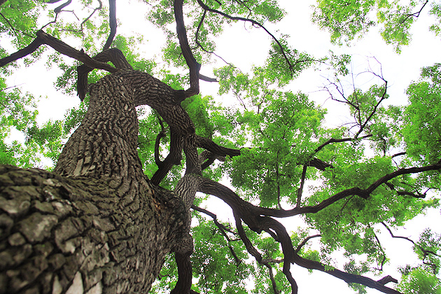 一般人總是習慣以自己的身高去取景,然而拍攝者更應該把觀察力放在腳下或者抬頭上仰,觀察是否有特殊之處,或者特別角度。這棵樹本身樹型特殊,加上近距離以抬頭上仰的方式取景,可以拍出更不同觀察角度下的樹型,貼近樹幹可以捕捉到樹皮上的質感,想像當我們化身為一隻螞蟻時,也許看到的正是這樣的角度,這是很好的作品。(淑俐作品)