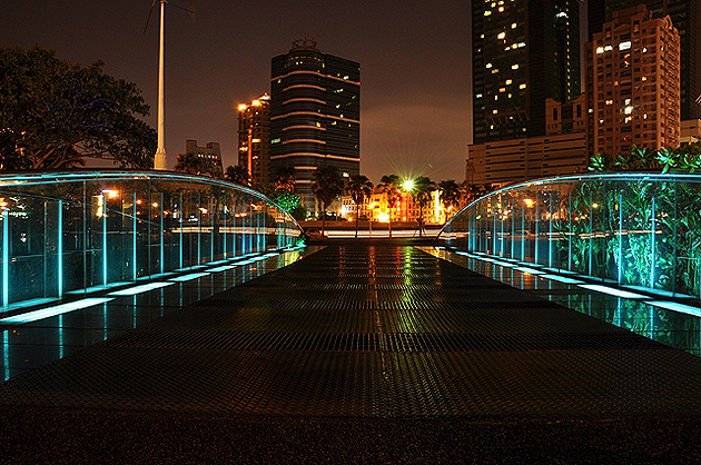 這張作品採用的是框景式構圖法,透過現場一個特別的紅色貨櫃擺設,巧妙地將八五大樓框了起來,框景中有顏色有細節也有剪影,而作品中營造的顏色對比,亦十分引人入勝,接近黃昏時刻的光線帶有一絲溫暖的黃調,整體而言是非常棒的一張作品! (Gino拍攝)