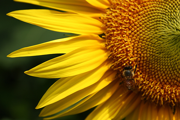 這張採用順光拍攝,可以表現物體百分之百的鮮豔顏色,並且將蜜蜂的位置安排在右下方的視覺重點處,構圖嚴謹,是很棒的佳作! (耀賢作品)