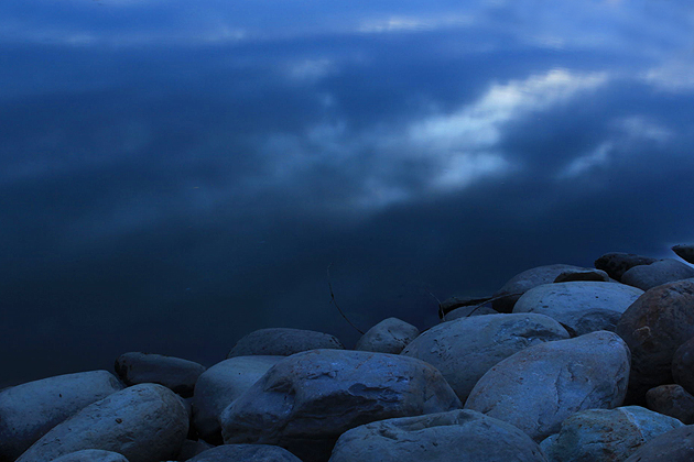 高雄愛河之心是一個熱門景點,各種討喜畫面不知被多少人重複拍攝,你是否能在熱門景點中發掘全新的畫面、獨樹一幟的詮釋拍法,關鍵就在攝影眼。這張佳作並不拍攝愛河之心聞名的曲橋倒影,而是拍攝水面上的雲彩倒影,由於時間適逢太陽下山後一小時內,水面倒影著冷色調的雲彩,極俱水墨風格,水紋與岸邊的石頭在材質上又形成軟調與硬調的二種極端對比,這是一張值得喝采的佳作! (豐年作品)