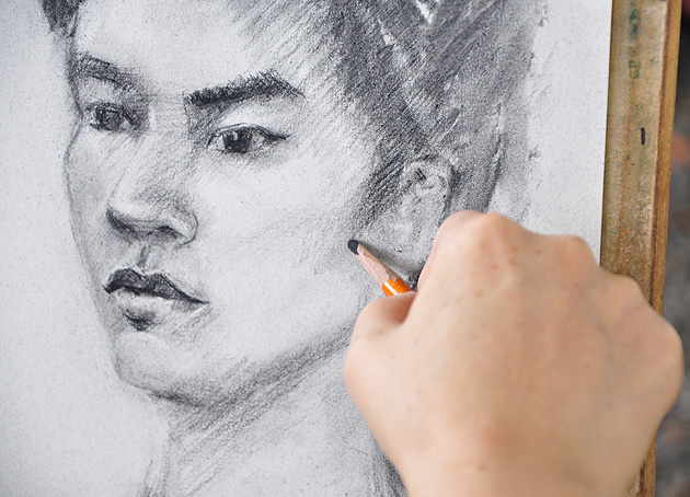 這張佳作拍攝的是一位畫家的寫生,不拍攝被畫者,也不拍攝畫者,透過近距離手邊的特寫,將細膩的碳筆質感展露無疑。(Fanny作品)