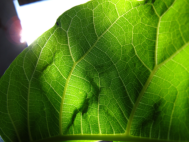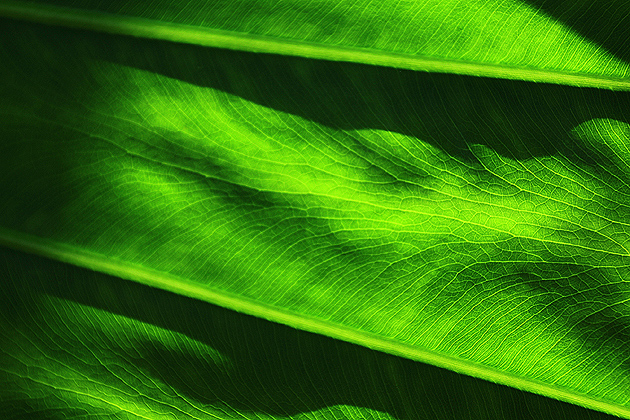 這張相片採用特寫的方式來描寫葉脈紋理,並且用光來引導視覺,光線集中處形成非常理想的視覺引導,讓觀賞者不由自主地欣賞葉面上的細節。(邑妃作品)