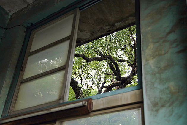 這張相片採用低角度的框景構圖,室內外的明暗互為對比,框景主體為室外的樹木,加上採用低角度拍攝,不流於單調,是很好的拍法。(宗憲作品)