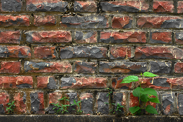 這張佳作拍攝時機為擴散光下,雖然沒有強烈的光影來突顯牆面上的立體感,不過換得的是較柔和的氛圍與均勻亮度,除了牆面上的細節外,畫面下方的小草分別代表小、中、大三種型態,像是低中高年級的小朋友一樣,饒富趣味。(家瑋作品)