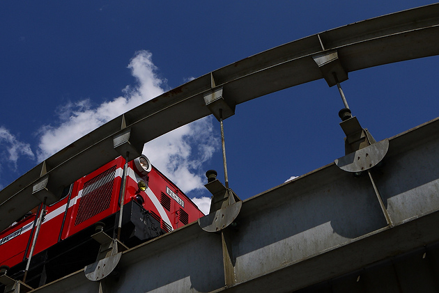 這張佳作拍攝時機只是一個抬頭的果斷時間,當攝影眼能力更熟練之後,便能在極短時間內判斷是否具有可拍價值,並進而產生拍攝行動。這張作品以橋下的超低角度拍攝過橋火車,有別於一般站在平面道路上拍攝車廂,紅色車廂與藍天互為強烈暖對比,橋身的曲線與斜線產生力道,整體構圖亦十分緊湊,非常棒的一張作品! (蕙如作品)