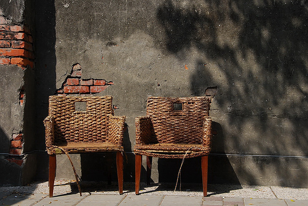 這張佳作非常具有故事性,所謂的故事性來自於每個觀賞者看到相片後內心產生的想像空間,以日常生活中最容易產生想像空間的元素,非椅子莫屬。這二張椅子倚牆比鄰,像是二位友人笑談時事,背景的牆面細節與扶疏光影,產生極佳的氛圍鋪陳。(靜芳作品)