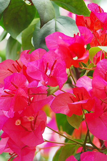 這張花卉以顏色對比構圖,花卉本身為洋紅,搭配面積比例少於主體的背景,更能透過綠葉的顏色襯托主體的桃紅色,這張作品若背景面積比例高於主體,則視覺力便會減弱。(明輝作品)