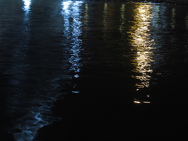 這張佳作拍設的是河流上的抽象燈影,由於願景橋二岸的路燈林立,這些燈影投射在河面上形成一道道不可預測性的抽象元素,我們拍攝夜景也要常觀察河面上是否有值得拍攝的倒影。(柏萱作品)