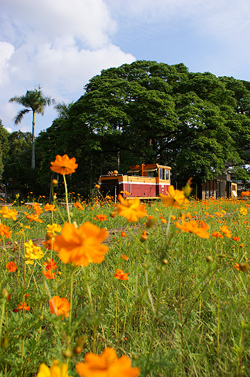 好的風景照往往包含前中後景具備,這張佳作便是如此,前景黃花,中景老式火車頭,後景藍天白雲作為視線的結束,若能使用更小光圈獲得清晰的黃花,這張會更棒! (沂辰作品)