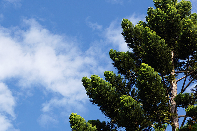 這張雙色調的佳作令人心曠神怡,豪邁的藍天白雲,搭配彷彿展臂擁抱藍天的大樹,看著看著心情也開朗起來,這張佳作除了具備開朗的性格外,樹尖前所安排的隱性動線亦安排了方向性的佈局。(定遠作品)