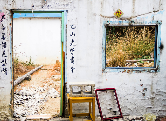 這張佳作採用框景式構圖,從殘破的一戶人家,透過窗框看著對面另一戶已搬遷的人家,過去應該熙攘熱鬧過吧這裡,但如今此地僅存幽寂,寥落蒼涼之情油然而生,對比的安排均看得出拍攝者的用心。(正鈞作品)