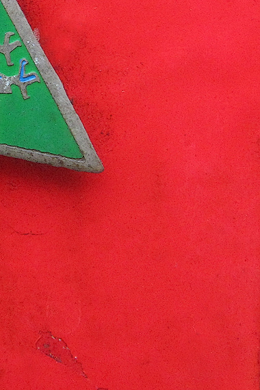 這張作品原作表現的主題以招牌裝飾品的寫實性記錄為主,經過二次構圖後,主題改變為幾何形狀與冷暖色調的對比,且在銳角的強化下,更顯整體視覺力道。(枚凌作品)