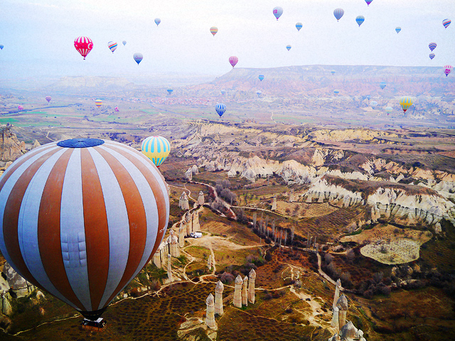 我曾經在課堂上強調視覺陌生感的重要性,高度的視覺陌生感容易引起好奇與關注,這張佳作便是最佳範例,在陌生的國度中乘風坐著熱氣球飛上天穹,世界盡收眼底,熱氣球群在碧空寫下美麗的十四行詩。除了陌生感的營造外,這張佳作採用同中取異的構圖方式,先取一個面積最大有別其他的熱氣球為異,再將這個主角放置於畫面視覺重點區,身處高空依然能沉著冷靜構圖,真的很棒! (盈佑作品)