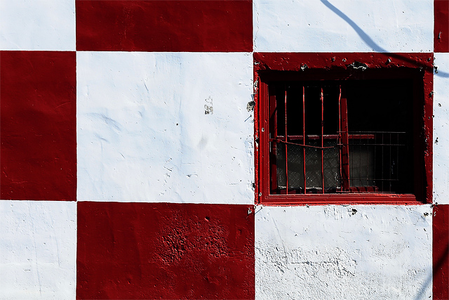 當面臨到重複性元素出現時,首重觀察是否具備同中取異的條件,以這張佳作為例,牆面重複紅白格子,惟其中一處紅色窗格是為差異,因此只要窗格位置安排妥當,定是佳作。(襄群作品)