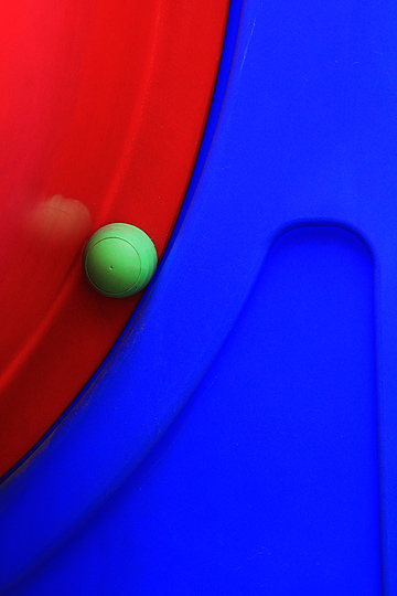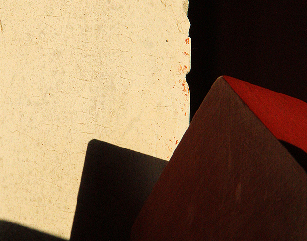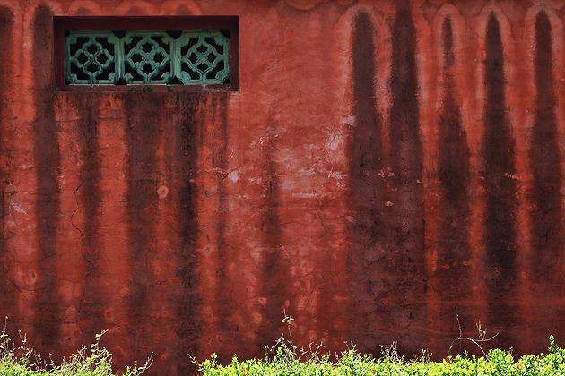 這張佳作的視覺重點在左上角的矩形,而這個矩形實際上又由三個正方形構成,三個正方形的暗綠與牆紅,及地上的亮綠互有冷暖對比,互有同類色呼應,色彩搭得非常好,而牆上的直線水痕,帶來更強的視覺力與豐富的紅色層次。(慶龍作品)