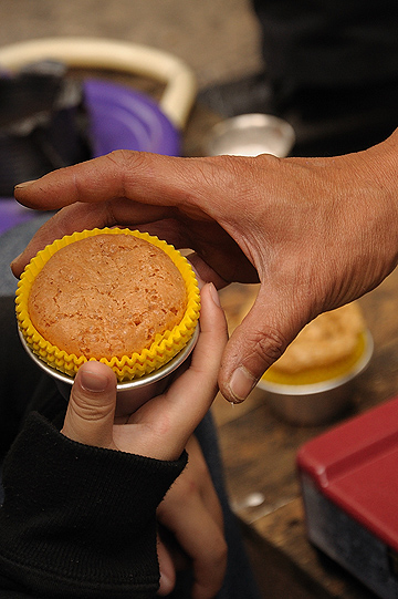 我個人非常佩服這張作品的成功,畫面中最強視覺力出現在糕餅這個圓形上,而大手與小手之間的夾處,又增強這個圓形,大手與小手之間互有接觸,象徵親密感,以及展現人文溫馨的一面,而這一切全發生在一個成功的決定性瞬間,真的很棒! (哲立作品)