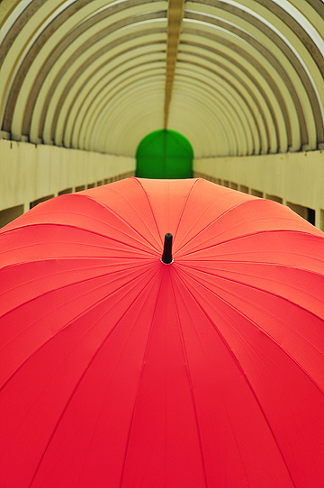 傘面由於具有透光性,透過這個特性來依據創意表現出剪影隱喻主題,並且傘後有另一面傘,這種拍法更顯拍攝者在表達力上的用心。(佳裕作品)