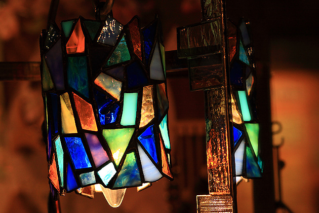 北海道小樽最著名的特產之一就是玻璃,這張拍攝於小樽的玻璃音樂館內,一盞彩繪玻璃燈,典雅瑰麗,鵝黃燈光下,像一位氣質貴婦人在鏡子前看著自己的裝扮,彷彿待會要趕一場盛宴。這張相片如果只是直接拍攝玻璃燈,就只是一般靜物的畫面,我注意到玻璃燈旁邊恰巧有一面鏡子,因此將角度稍微偏離一下,讓部分燈體從鏡子的反射中出現,也就是虛實相映,但是由於反射燈體的角色為陪襯,因此面積不能大於實體燈體,僅虛映局部。另外各位讀者會發現我很多作品都是用擬人化的角度在看拍攝主體。