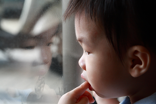 生活周遭只要有倒影之處都可以發揮創意。這張是宣樺凝視窗外時所拍攝的窗戶倒影,雖然直接拍攝到的是宣樺側面,然而透過倒影,可從反射面中看到宣樺的表情,這也是拍攝倒影有趣之處,就是可以透過反射面拍攝到主體的另一個面。