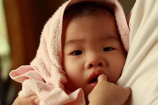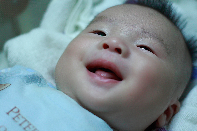 除了提高快門速度外,讓寶寶靠近窗戶邊。利用太陽從窗戶透射進來的擴散光也是個很棒的方法,擴散光可以提供柔和的光質,讓陰影柔和,並且光線會在皮膚上形成從明到暗的層次,立體感十足。
