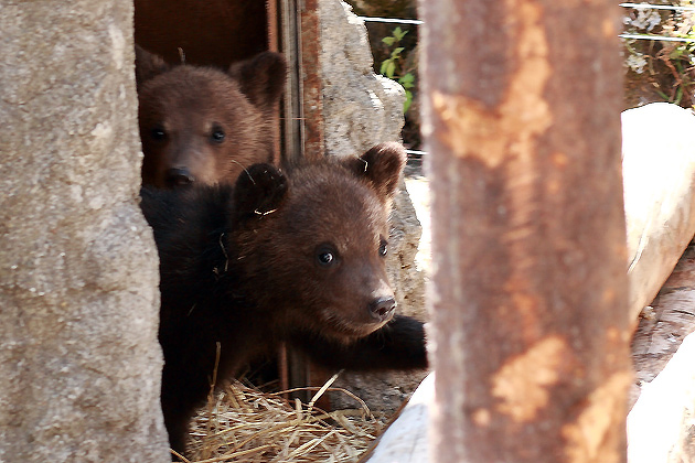 這二隻小熊大部分時間都窩在人造洞穴中,不太出來,可能是因為這樣,所以遊客雖多,卻都跑去餵食大熊,來看小熊的遊客極其稀少,我為了讓小熊可以跑出來,因此費盡心思,模仿各種不同的動物叫聲,連哄帶騙地把小熊吸引出來一探究竟,這才有機會拍得珍貴的小熊照。